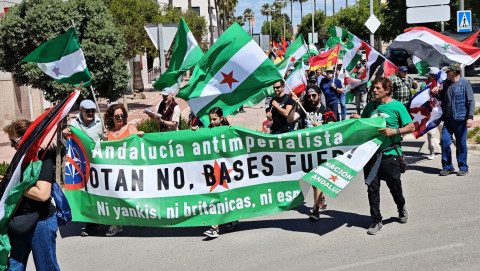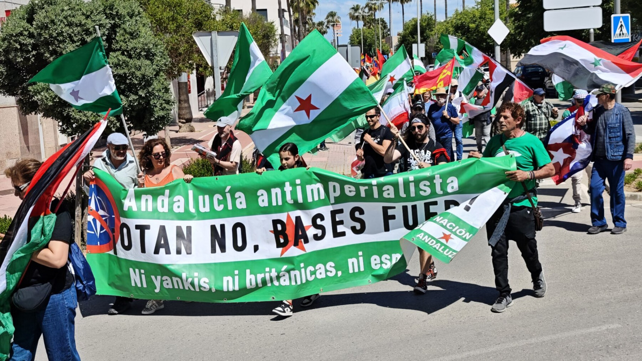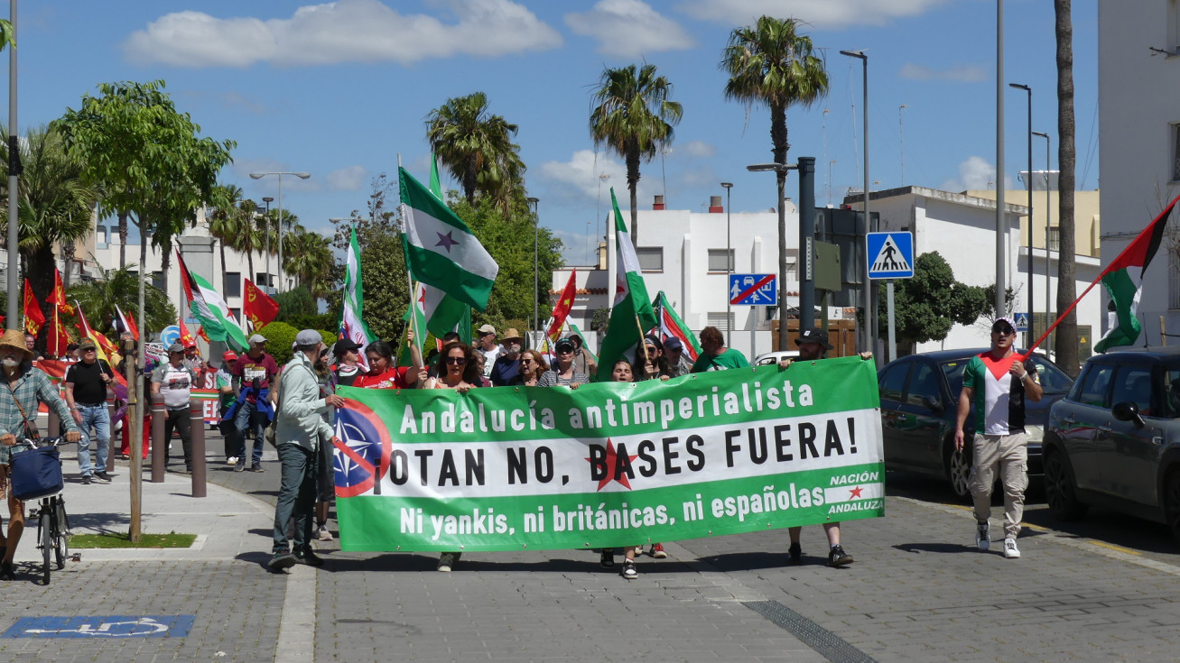 Para los manifestantes, Andalucía no puede ser "teatro de operaciones del imperialismo norteamericano, al cual, el estado español, le cede tierra, mar y aire andaluz para que monten bases como la de Rota y Morón, que el imperio yanqui las utiliza de palanca para sus agresiones e intervenciones criminales. No nos valen declaraciones para la galería, de uso claramente electoral, cuando por ejemplo se están invirtiendo cientos de millones de euros tanto por parte de EEUU como del estado español, para ampliar las bases de Rota y de Morón".