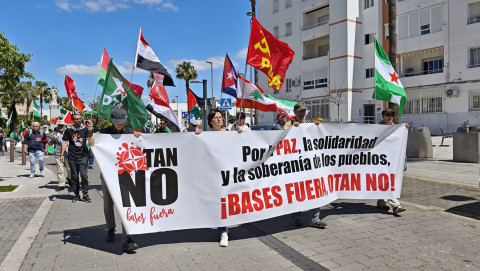 Durante la mañana de este domingo, por algunas calles de Rota se ha vuelto a escuchar el ya mítico "OTAN no, bases fuera", que colectivos antiimperialistas vienen gritando desde hace casi cuatro décadas para pedir el desmantelamiento de las bases militares de suelo andaluz.
