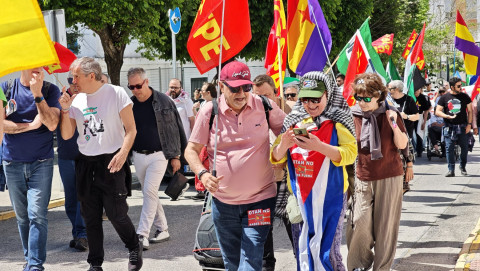 A lo largo del recorrido, los participantes han agitado banderas palestinas, del Partido Comunista, han llevado pancartas y han gritado las consabidas consignas de otros años porque esta cita anual se repite aunque en esta ocasión, añaden en el contexto de guerra, la necesidad de una respuesta más contundente.