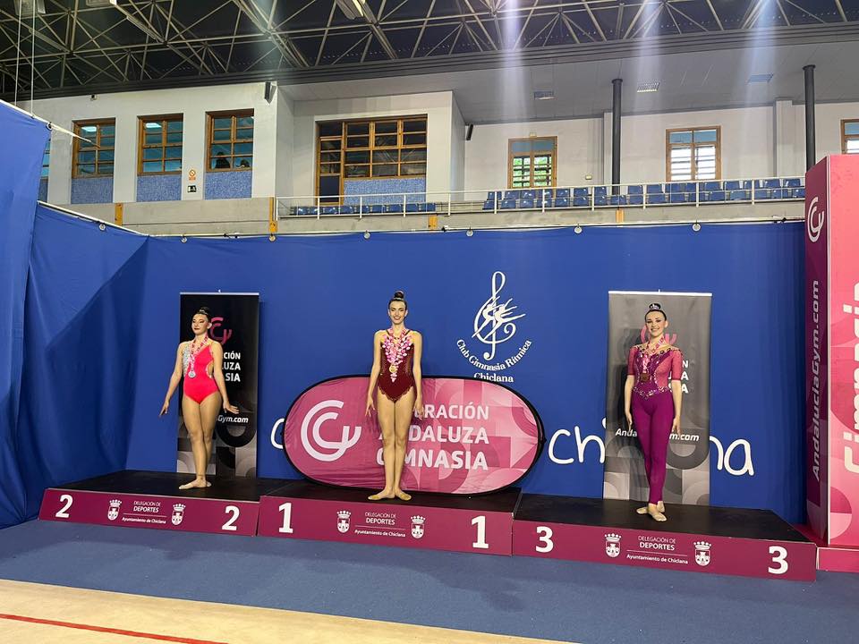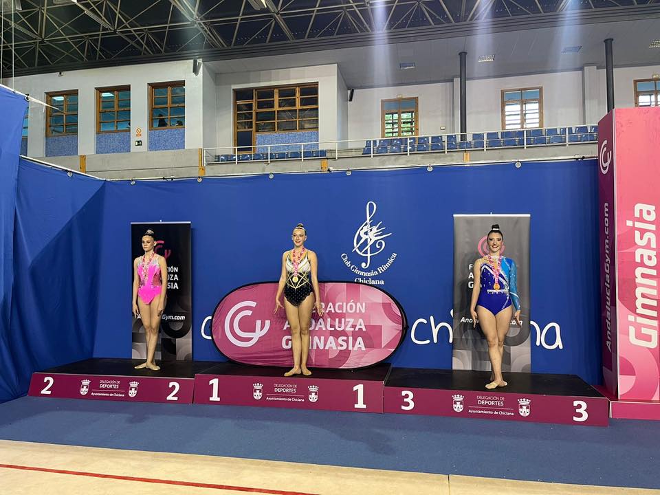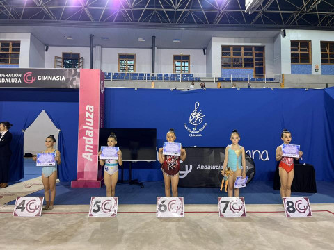 Raquel Herrera Picazo consiguió el oro en Junior Cinta, mientras que Celia Puyana lo hacía en Junior Aro y conseguía el oro también el equipo Junior Copa y Abigail Pruaño en Junior Maza. Por su parte, Ariadna Santos recibía diploma en Junior pelota.