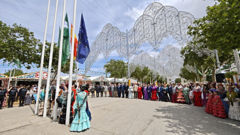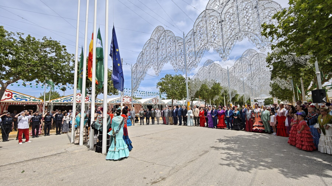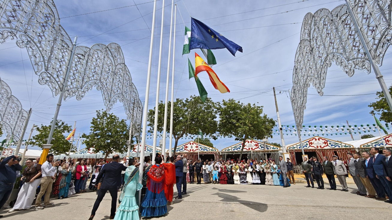 Con un real que se ha ido llenando a medida que ha avanzado el día, los roteños viven hoy el comienzo oficial de su Feria de Primavera, que se ha inaugurado a la una de la tarde con el tradicional acto de izado de las banderas de Rota, Andalucía, España y Europa en el centro de la calle principal.