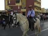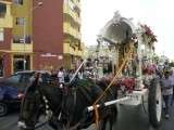 Con caras cansadas aunque con la satisfacción de haber podido disfrutar un año más del reencuentro con la Blanca Paloma, los rocieros fueron saludando a muchos de sus conocidos a los que entregaron algo del romero del camino. Los hermanos rocieros, a caballo, andando, portando insignias y varas de la hermandad o subidos en sus coches, fueron desfilando por las calles de la localidad hasta llegar a la parroquia del Carmen donde sobre las nueve de la noche, se celebraba una misa para dar gracias a la virgen.