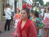 Como estaba previsto, tras la celebración de una eucaristía en la parroquia de Nuestra Señora de la O, los casi cien niños que participaron en esta Cruz de Mayo se dirigieron hasta la Casa de Hermandad de Nuestro Padre Jesús Nazareno desde donde partía la procesión. A las ocho de la tarde comenzaba a salir el cortejo compuesto por pequeños que lucían el típico traje andaluz; el de flamenca para ellas, y el traje de corto para ellos. Con flores en las manos  y varas iban acompañando a la Cruz que abría el paso.