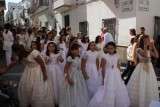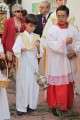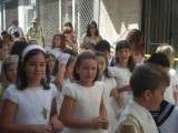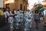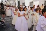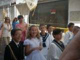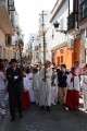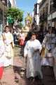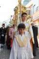 Abriendo paso al Corpus Christi se encontraba una amplia representación de niños que este año han recibido su Primera Comunión. Eran en torno a unos 55 los chavales de la localidad que luciendo el traje que llevaron en la ceremonia cuando recibieron a Cristo Sacramentado, daban la nota más juvenil al cortejo. A ellos, les seguían representantes de toda la comunidad religiosa de Rota. Acompañando a la Santa Custodia iban miembros de las asociaciones católicas, agrupaciones parroquiales, de las hermandades y