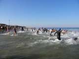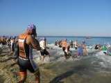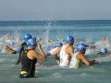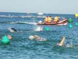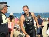 A las diez de la mañana y con unas temperaturas bastante veraniegas, el domingo ha comenzado para unos 420 corredores a pie de orilla desde donde han partido para enfrentarse al circuito de esta triatlón. Este año, y esa era una de las novedades, los triatletas han salido en dos grupos, primero los federados y féminas y unos minutos después, los no federados, de este modo se ha intentado que los inicios del recorrido sobre todo en natación y bici fueran más escalonados para preservar la seguridad de los participantes. Lo primero que han tenido que afrontar han sido los 750 metros de natación en la playa de Punta Candor donde desde primera hora ya había bastante público para animar a los corredores. La verdad es que esta es una prueba que reúne no sólo a muchos deportistas sino a numerosos aficionados que no han parado de dar ánimos y gritos de aliento a sus familiares, amigos y conocidos, lo que ha contribuido a un estupendo ambiente.