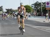 Tras la natación, llegaba el turno de la carrera en bicicleta. Un total de 20 kilómetros que han discurrido desde la rotonda principal de Punta Candor a la zona de Los Cabales. Este sin duda, ha sido el tramo del circuito más peligroso ya que los triatletas debían dar tres vueltas al mismo recorrido semiurbano y se han vivido algunos momentos de tensión, sobre todo entre los espectadores por el miedo a alguna caída o choque masivo. De hecho, y como anécdota, a la vista de que no había voluntarios ni nadie de la organización junto al cono que indicaba que ahí debían dar la vuelta, el público se encargaba de gritar alertando de esa circunstancia. Tanto es así que un espontáneo decidió por cuenta propia ponerse junto al citado cono para que los corredores no se despistaran y acabó siendo llamado por la Policía Local que le tomó los datos identifcativos. Al margen de este contratiempo, y pese a algún pinchazo o tirones entre los corredores, la prueba ha seguido con normalidad con el tramo final, los 5 kilómetros de carrera a pie.