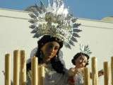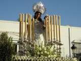 Vestida de blanco, con saya de tisú de plata y manto blanco con bordado plateado, la Merced procesionó inmaculada en un paso sencillo, que estrenó el año pasado, y que estuvo dirigido por el capataz Vicente Izquierdo, junto a los contraguías Juan Lobato, Paco Andrade y José Izquierdo. En esta ocasión, no había estrenos a destacar ya que la Agrupación Parroquial Nuestra Señora de la Merced ha hecho en estos tres años muchos esfuerzos para conseguir su salida en procesión, lo que no le ha permitido afrontar nuevos gastos este año.