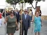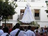 Con un cortejo reducido, donde destacó la presencia de mujeres que lucían la tradicional mantilla española y representantes de algunas hermandades roteñas, la Virgen partió pasadas las siete de la tarde de la parroquia de Nuestra Señora de la O donde comparte capilla con Nuestro Padre Jesús Nazareno desde que hace ocho años fuera restaurada la talla que ayer procesionaba por la villa.