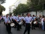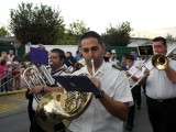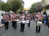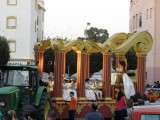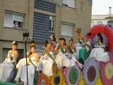 Tras las cinco naves espaciales, aparecía la primera de las carrozas con diez damas del Rosario sucedida por la batukada "Caipirinha" que ha animado bastante el cortejo como suele ser habitual. Le seguía la segunda de las carrozas con el resto de las damas y una charanga que abría paso a la nueva carroza que este año se estrenaba portando a la Dama Mayor, Alba Helices, junto a sus ocho pajes.  Como cierre del cortejo, la banda municipal de música "Maestro Enrique Galán".