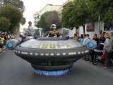 Abriendo el cortejo, la Banda de Música de Nuestro Padre Jesús Nazareno y tras ellos, unas naves galácticas que han sido la diversión de los más pequeños ya que echando humo o pompas de jabón han llamado mucho la atención por sus dimensiones y por el juego que sus  conductores han dado. Quizás lo más destacable de esta cabalgata que ya lleva un par de años al igual que la salida de los Gigantes y Cabezudos levantando alguna crítica por lo reducida.