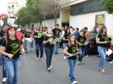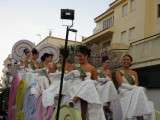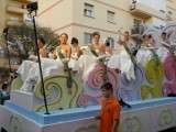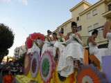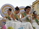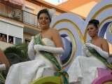 Sobre las siete y media de la tarde partía el cortejo desde la explanada de Renfe para enfilar las calles y plazas del recorrido previsto. Mucho público ha vuelto a salir a la calle para disfrutar de este desfile que de nuevo, y como consecuencia de la crisis y los recortes, se ha visto muy reducido con tan sólo tres carrozas para las 22 damas del Rosario, lo que ha provocado que de nuevo, las jóvenes vayan algo apiñadas. Aún así, una vez más, todas han lucido su mejor cara, han vuelto a mostrar el traje blanco que ya estrenaran el día de la coronación de la Dama Mayor el pasado viernes y han lanzado serpentinas a los ciudadanos que esperaban en las aceras. Público que se ha ido multiplicando a medida que la cabalgata ha ido llegando a la zona más céntrica, principalmente, la avenida María Auxiliadora y San Fernando donde las aceras estaban llenas.